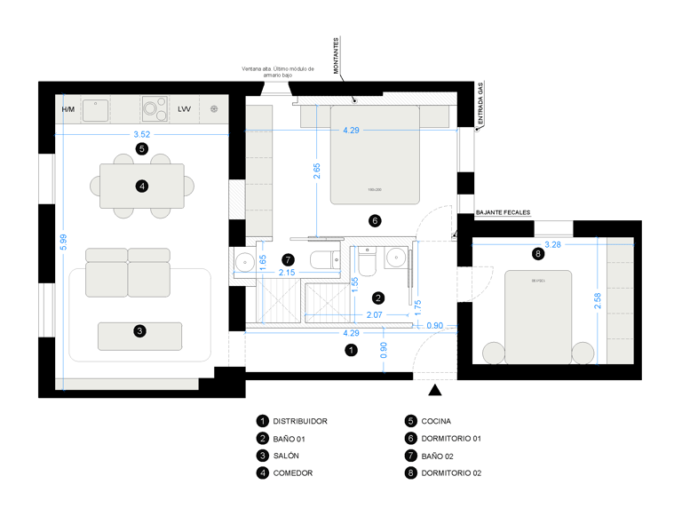 Superficie: 68 m² (Vivienda: 64 m², Comunes: 4 m²)