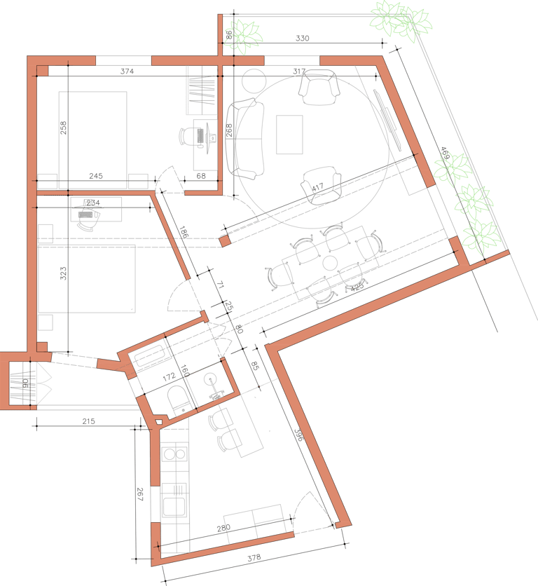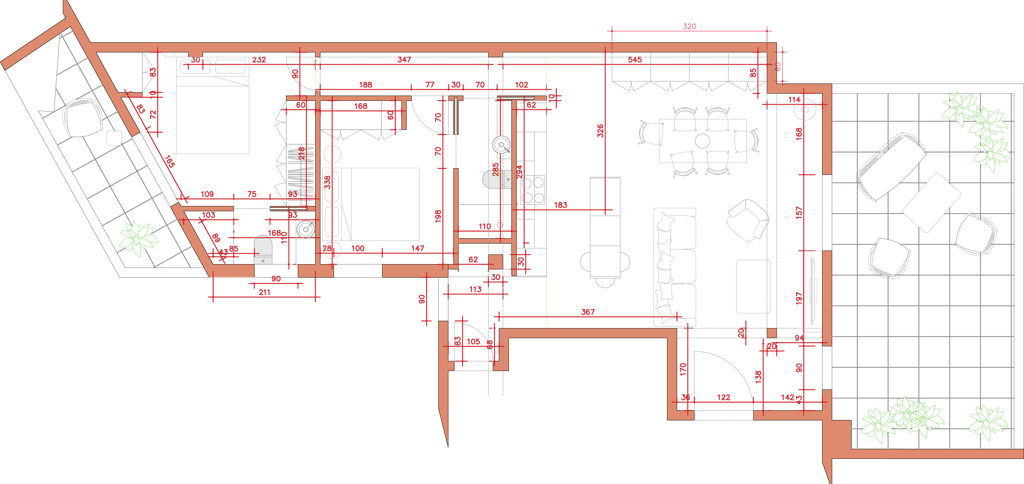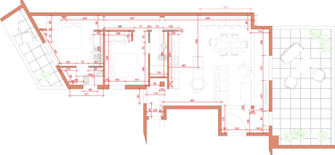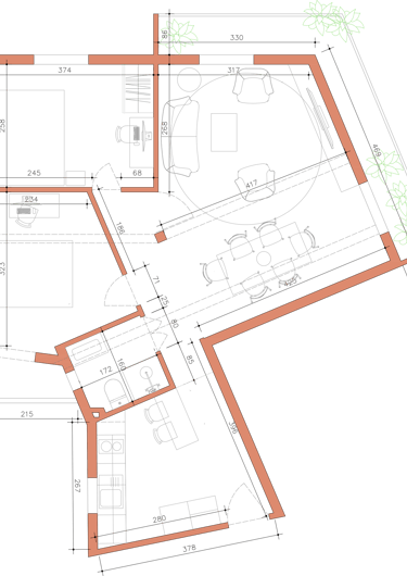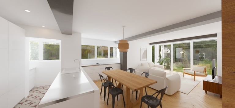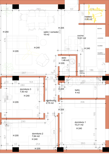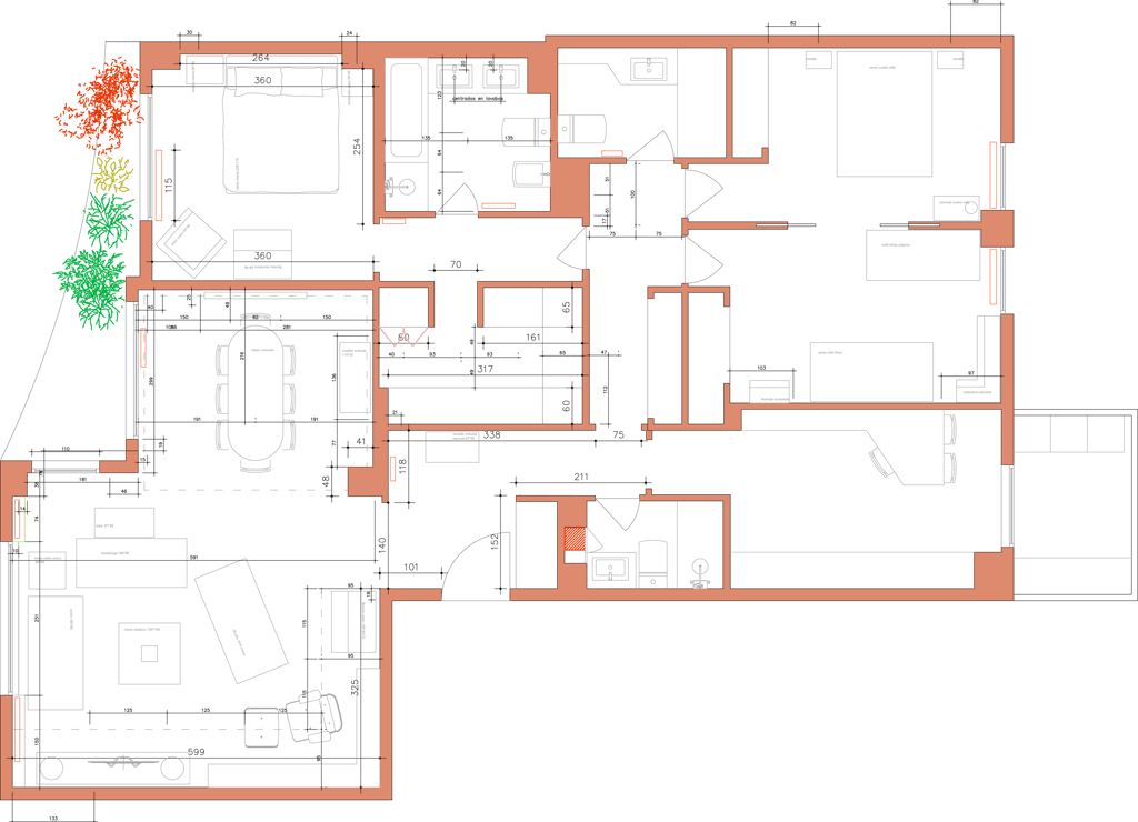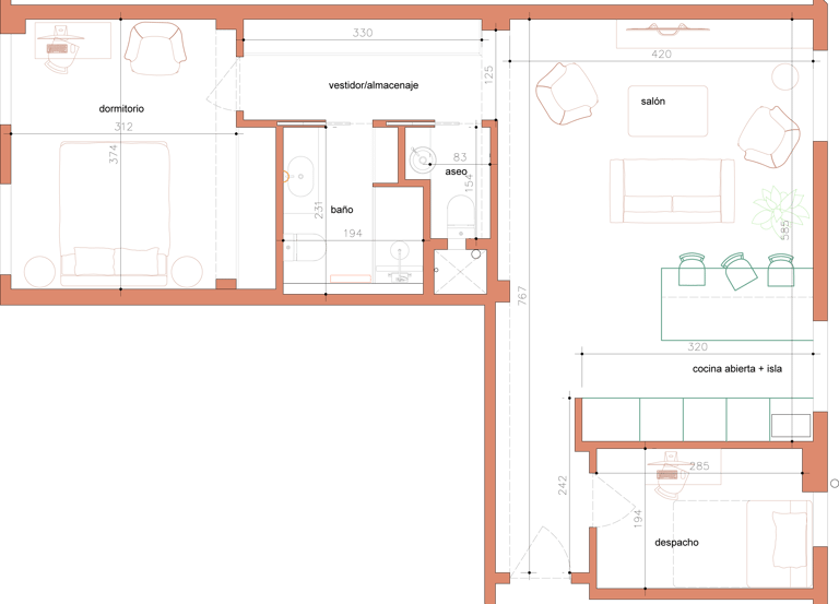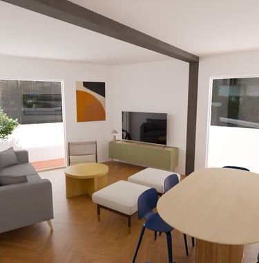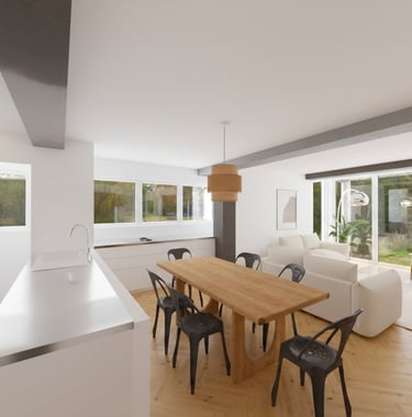 2026, proyecto en curso. Para esta reforma, los propietarios tenían las cosas muy claras. Ganar luz, reutilizar los elementos de materiales nobles preexistentes, abrir espacios y una gran cocina. Para ello, le "damos la vuelta" a la casa, cambiando la actual zona de día por la de noche, eliminando así completamente el pasillo distribuidor, de manera que ganamos metros, amplitud y luz.