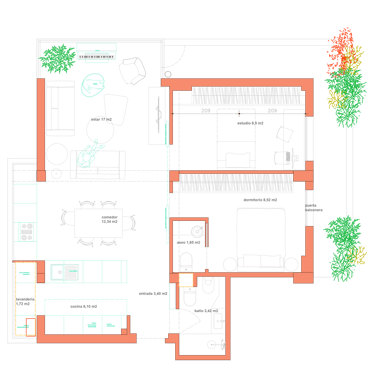 2024, finalizado. En esta reforma exprimimos al máximo el espacio para crear un piso ideal para compartir. Líneas sencillas y puras para aprovechar cada centímetro.